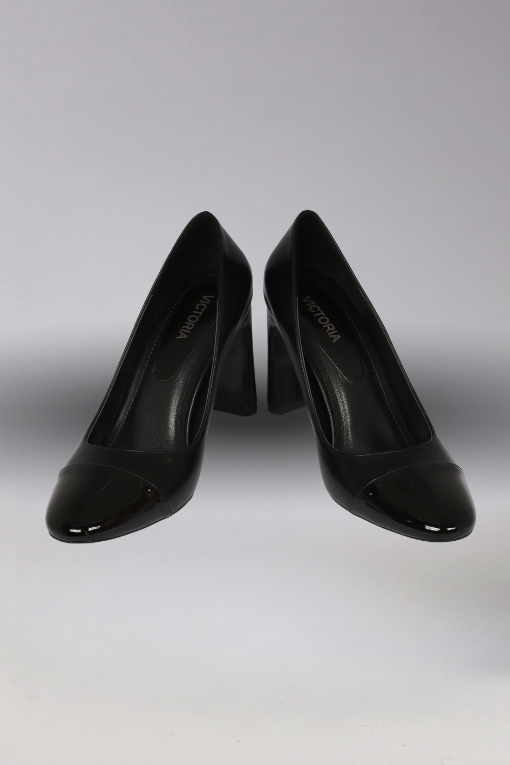 1. Topuk Tipi Özel Tasarım Kavisli Topuk 2. Topuk Yüksekliği 9 cm 3. Materyal Mat Cilt & Parlak Rugan Kombinasyonu