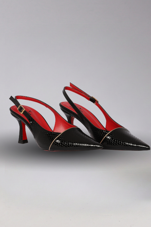 Arkası Açık Metal Detaylı Kroko Topuklu Ayakkabı