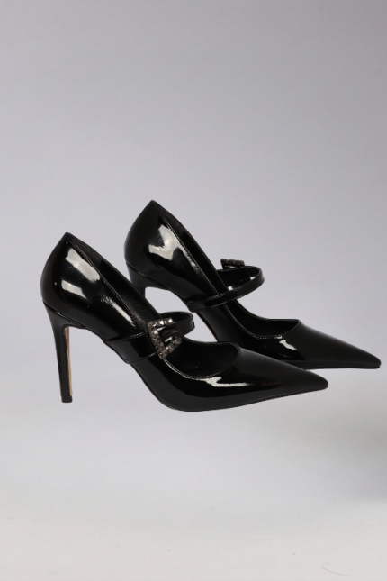 Siyah Rugan Mary Jane Formlu Abiye Ayakkabı