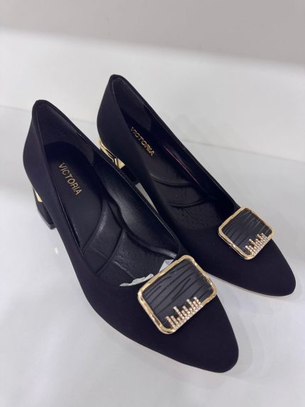 Tokalı Süet Kısa Topuk Ayakkabı