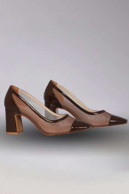Transparan Fileli Siyah Rugan Küt Burun Ayakkabı