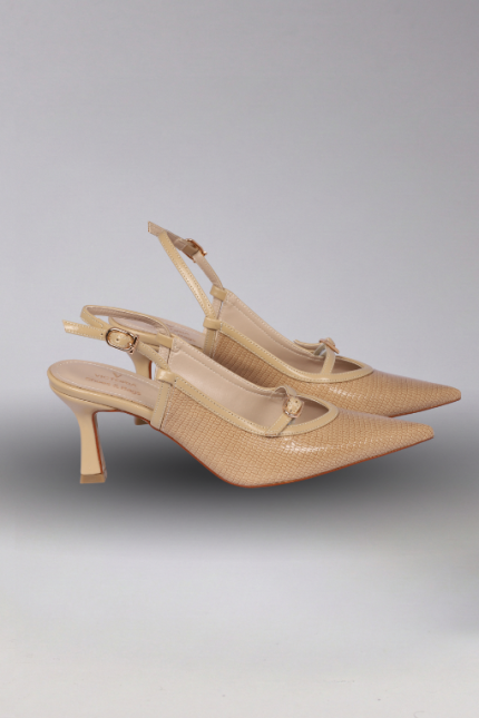 Toka Detaylı Arkası Açık Kroko Topuklu Ayakkabı
