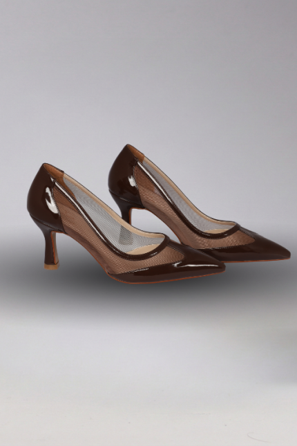 1. Topuk Tipi Kadeh Form İnce Topuk 2. Topuk Yüksekliği 8 cm 3. Materyal Parlak Rugan & Transparan File (Mesh)