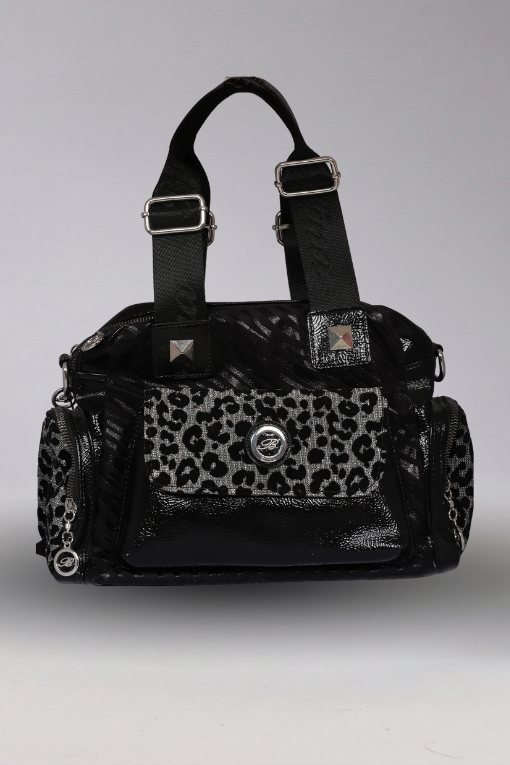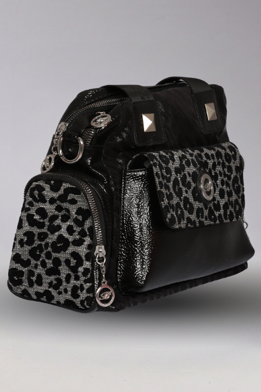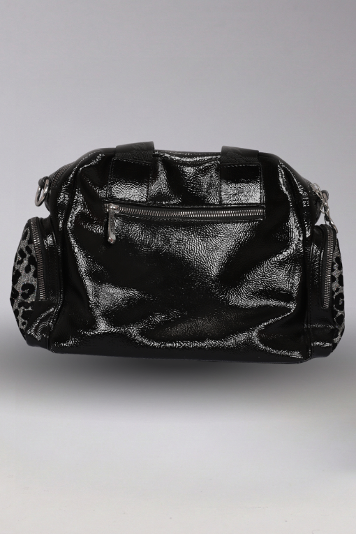 Simli Leopar Kumaş & Parlak Rugan Detaylar