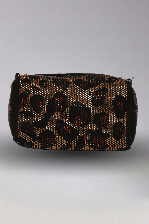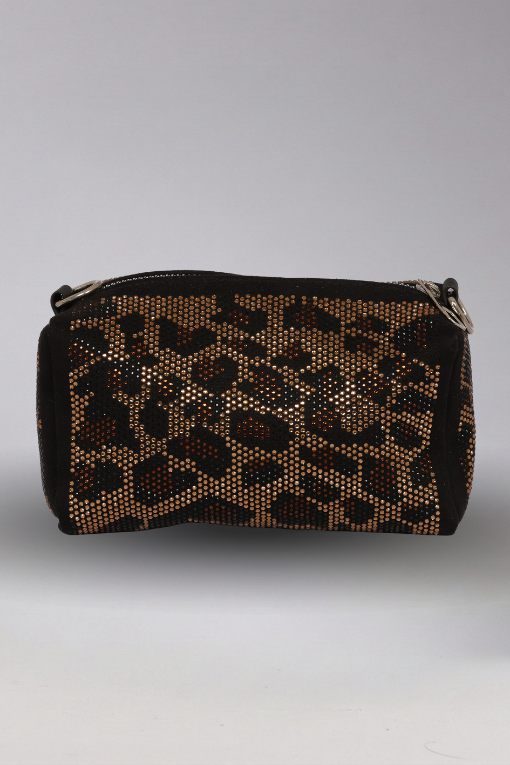 Işıltılı Leopar Baskılı Fermuarlı Baget Çanta