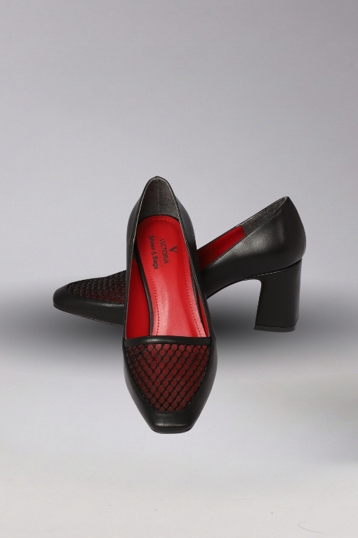 Kalın Topuk Fileli Ayakkabı