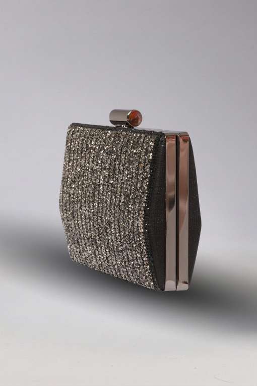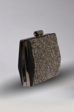 Koyu Metal Çerçeveli Işıltılı Gece Çantası