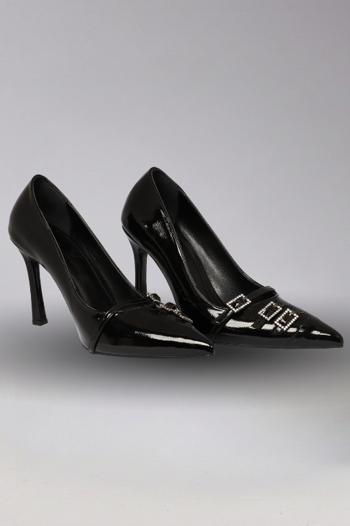 Sivri Burun Parlak Siyah Topuklu Ayakkabı