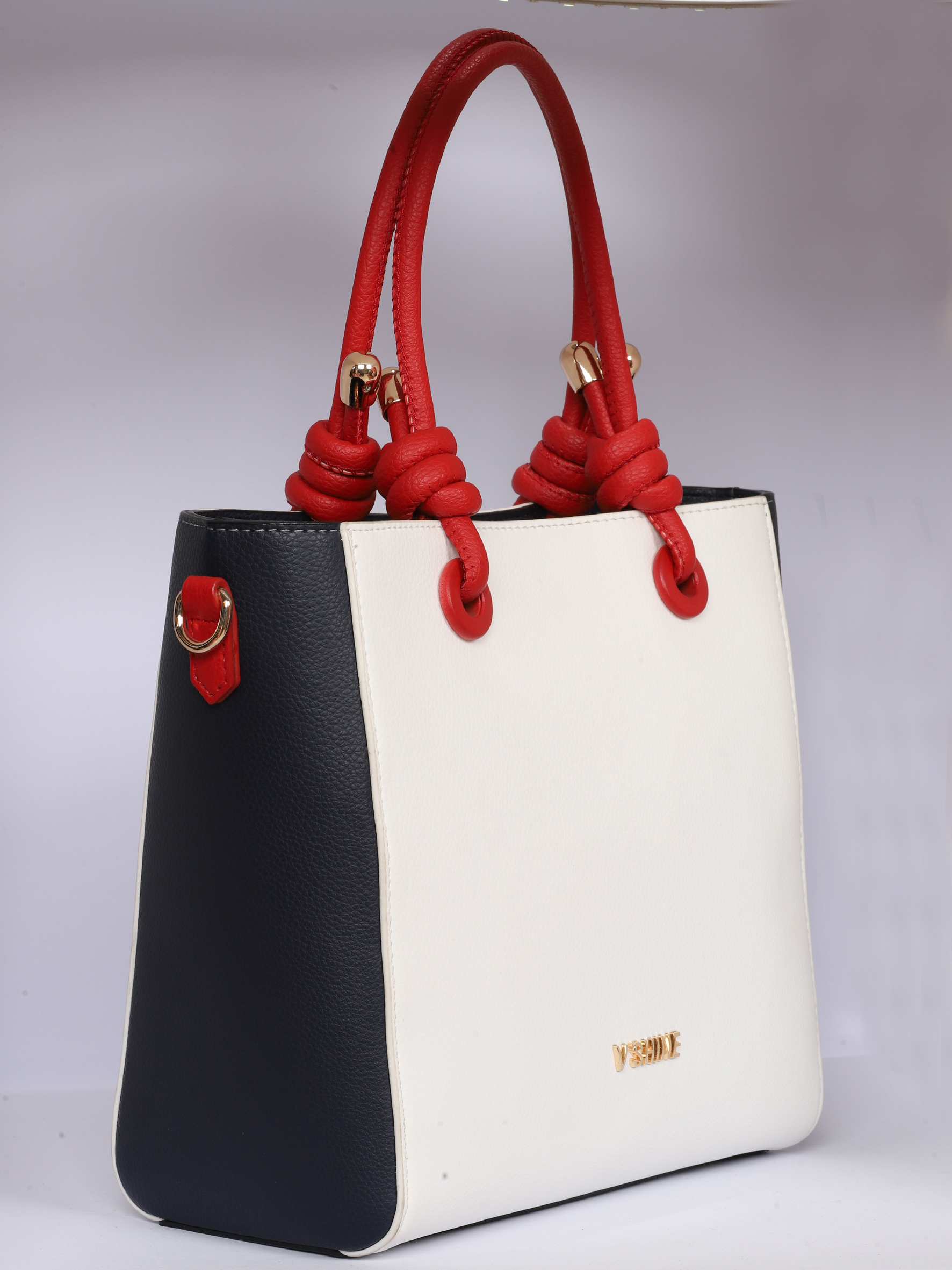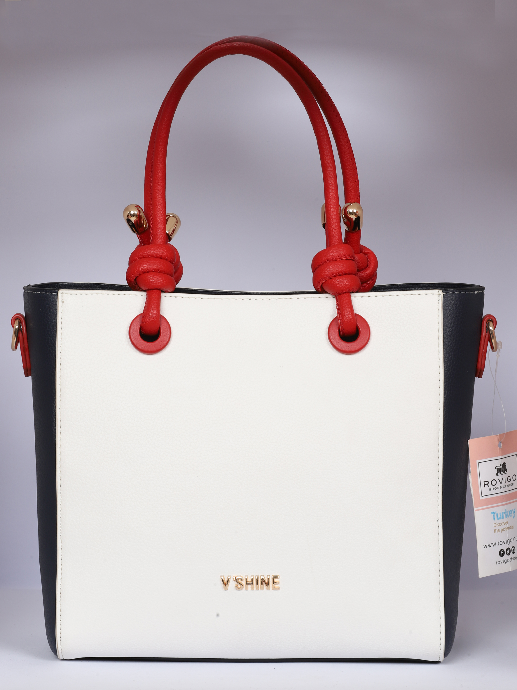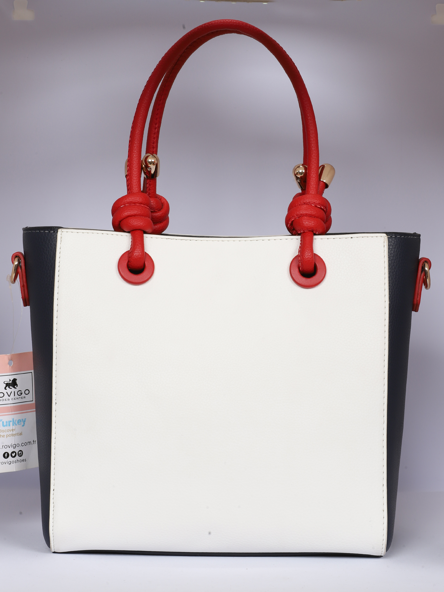 Lacivert Beyaz Kombinli Kırmızı Saplı Şık Çanta
