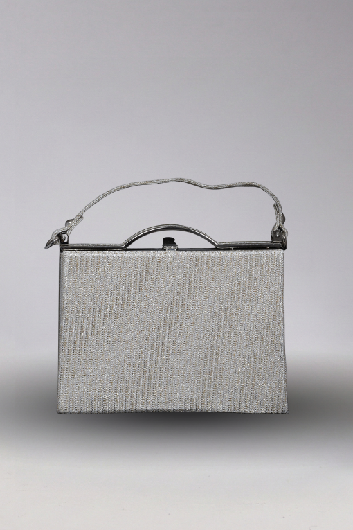 Retro Stil Gri Işıltılı Kutu Çanta