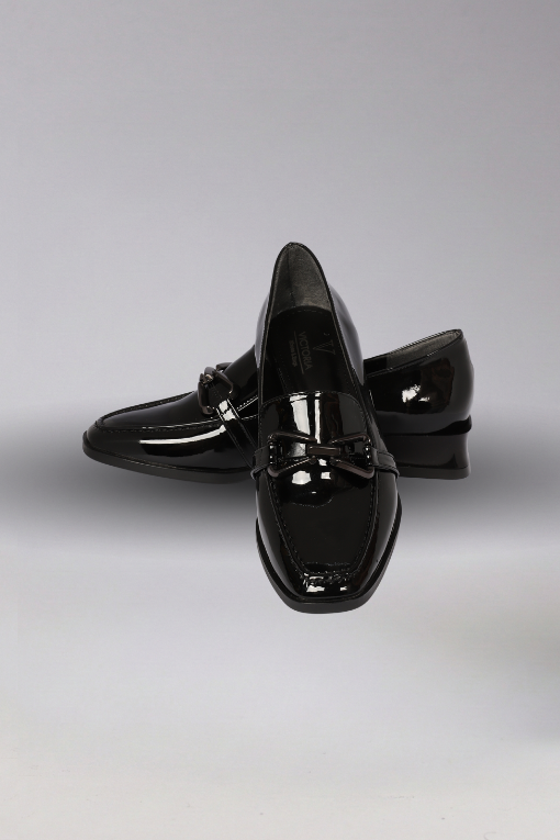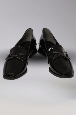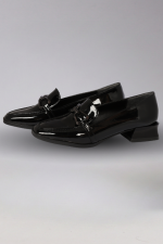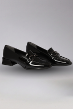 Kalın Tabanlı Siyah Rugan Blok Topuklu