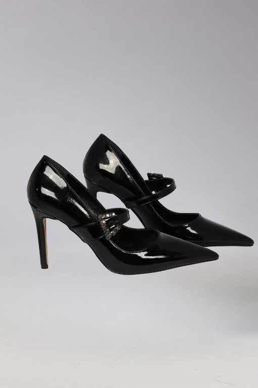 Siyah Kristal Taşlı Mary Jane Babet