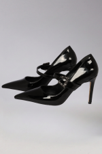 1. Topuk Tipi Kadeh Form İnce Topuk 2. Topuk Yüksekliği 8 cm 3. Materyal Parlak Rugan & Transparan File (Mesh)