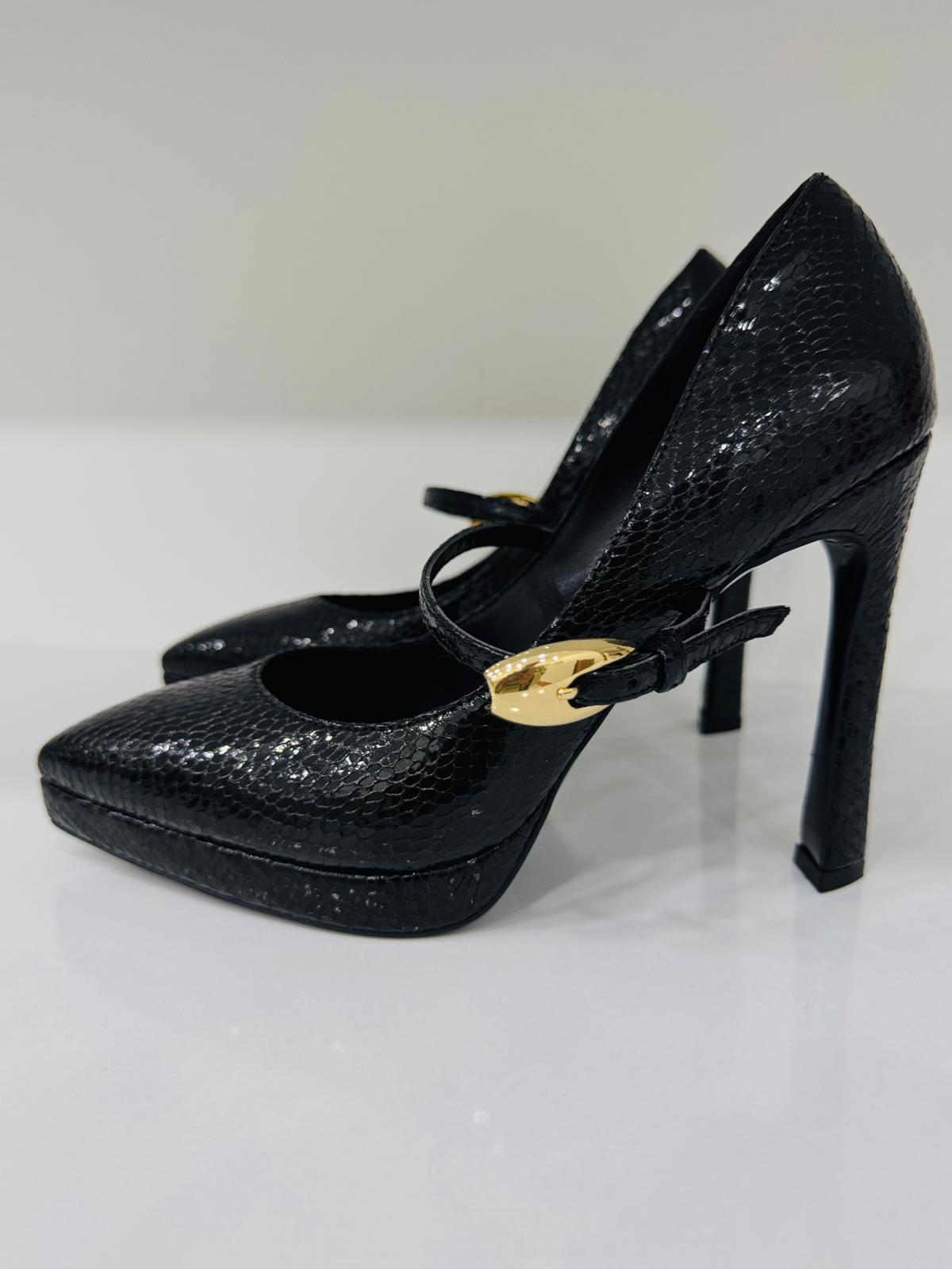 Siyah Mat Deri Platform Topuklu Ayakkabı