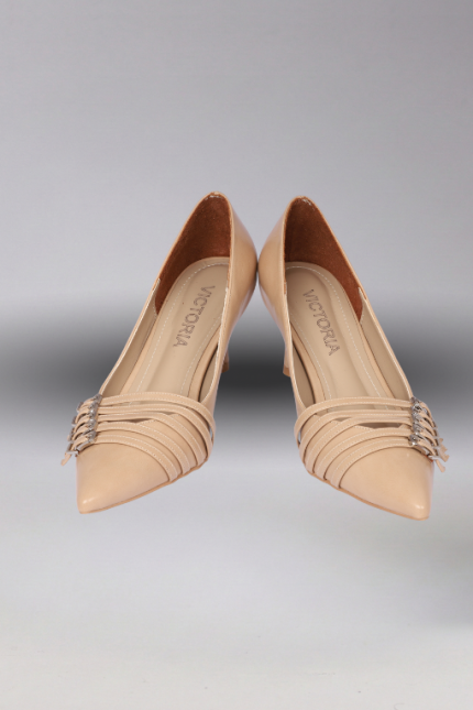 Çoklu Tokalı Rugan Bej Topuklu Ayakkabı Stiletto