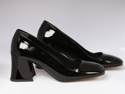 1. Topuk Tipi Özel Tasarım Kavisli Topuk 2. Topuk Yüksekliği 9 cm 3. Materyal Mat Cilt & Parlak Rugan Kombinasyonu